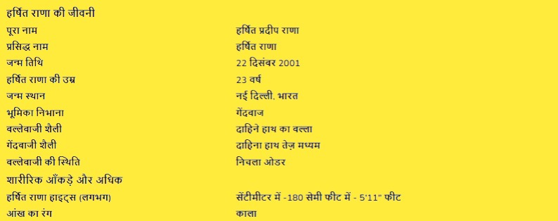 हर्षित राणा के बारे में कुछ जानकारी:-